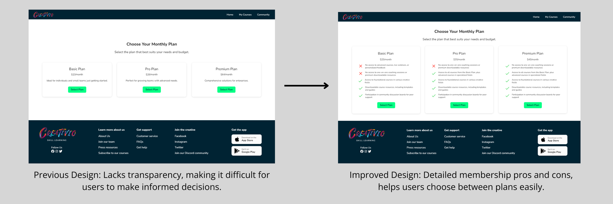 Provide Transparent Pricing: Create a pricing structure that eliminates ambiguity and builds trust, whether users opt for individual courses or memberships.