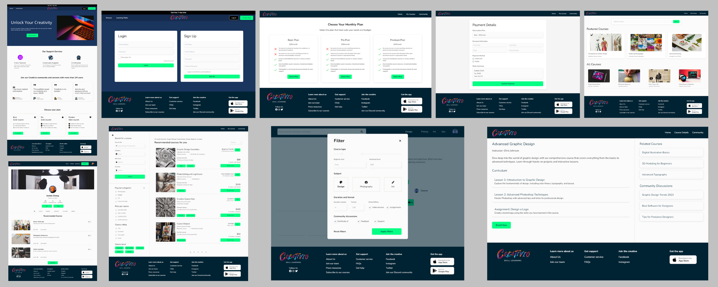 We began by identifying the core needs of Creativio’s audience: they wanted a platform where they could easily find courses tailored to their skill level, explore various creative fields, and trust that the pricing was straightforward and fair. The major challenge lay in bridging the gap between an intuitive user experience and the diverse needs of a multi-level audience interested in skills including photography, drawing, 3D sketching, and many others, ensuring a diverse learning experience for users.